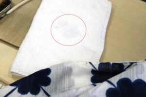 このときも下のタオルにぼやっとした色がうつることがあります。