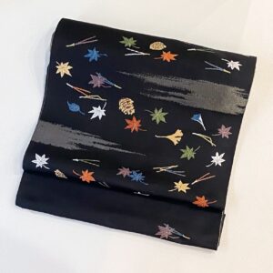 好季節・錦秋のおでかけを、 彩り豊かに表した風情のよい吹き寄せ柄の帯で、 たのしんでみませんか。
