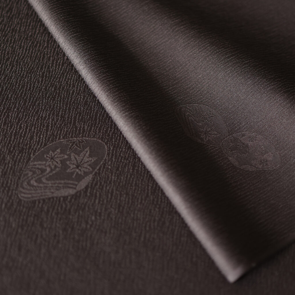 地紋として貝合わせの柄を小紋調にちりばめており、貝の中には四季のお花を織り出しました。仕立ての際に柄が切れないような工夫もされております。