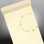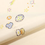 色とりどりの宝物が円の形に並ぶ、可愛らしい小紋です。